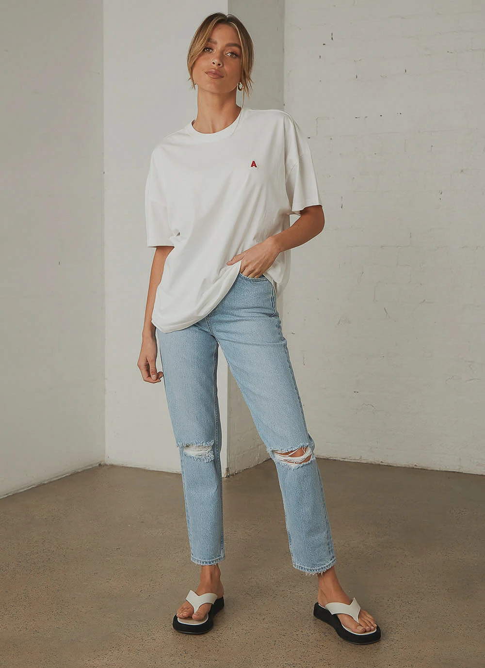 This simple tee has integrity; made from the highest quality cotton, with proper stitching and hem, it’ll really go the distance. This vintage cut is on-trend, with an oversized fit that looks killer tucked into jeans, or tied up to create a retro style crop.