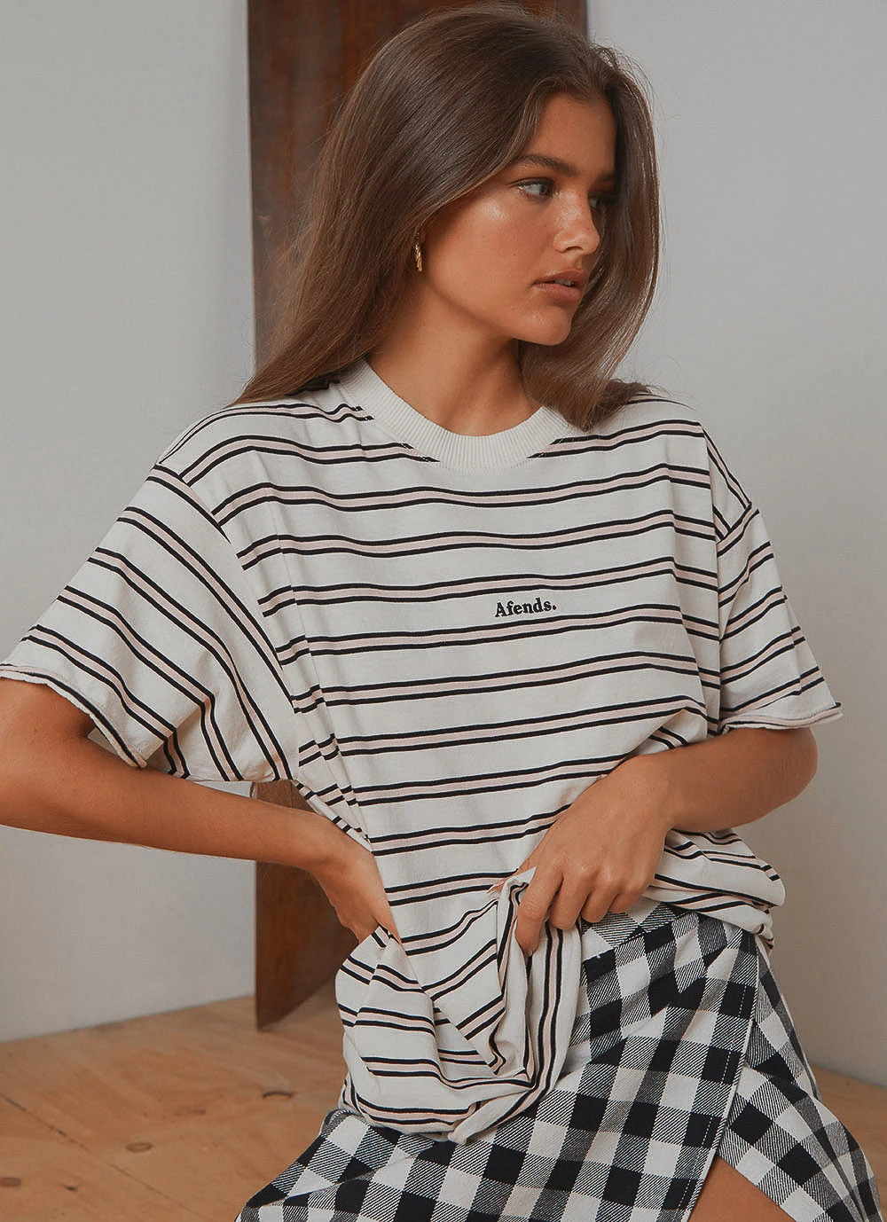 Niko is our new striped staple. Crafted from sustainable GOTS certified lightweight organic cotton jersey in our custom yarn dye stripe, this oversized tee has a timeless appeal and soft-hand feel.
