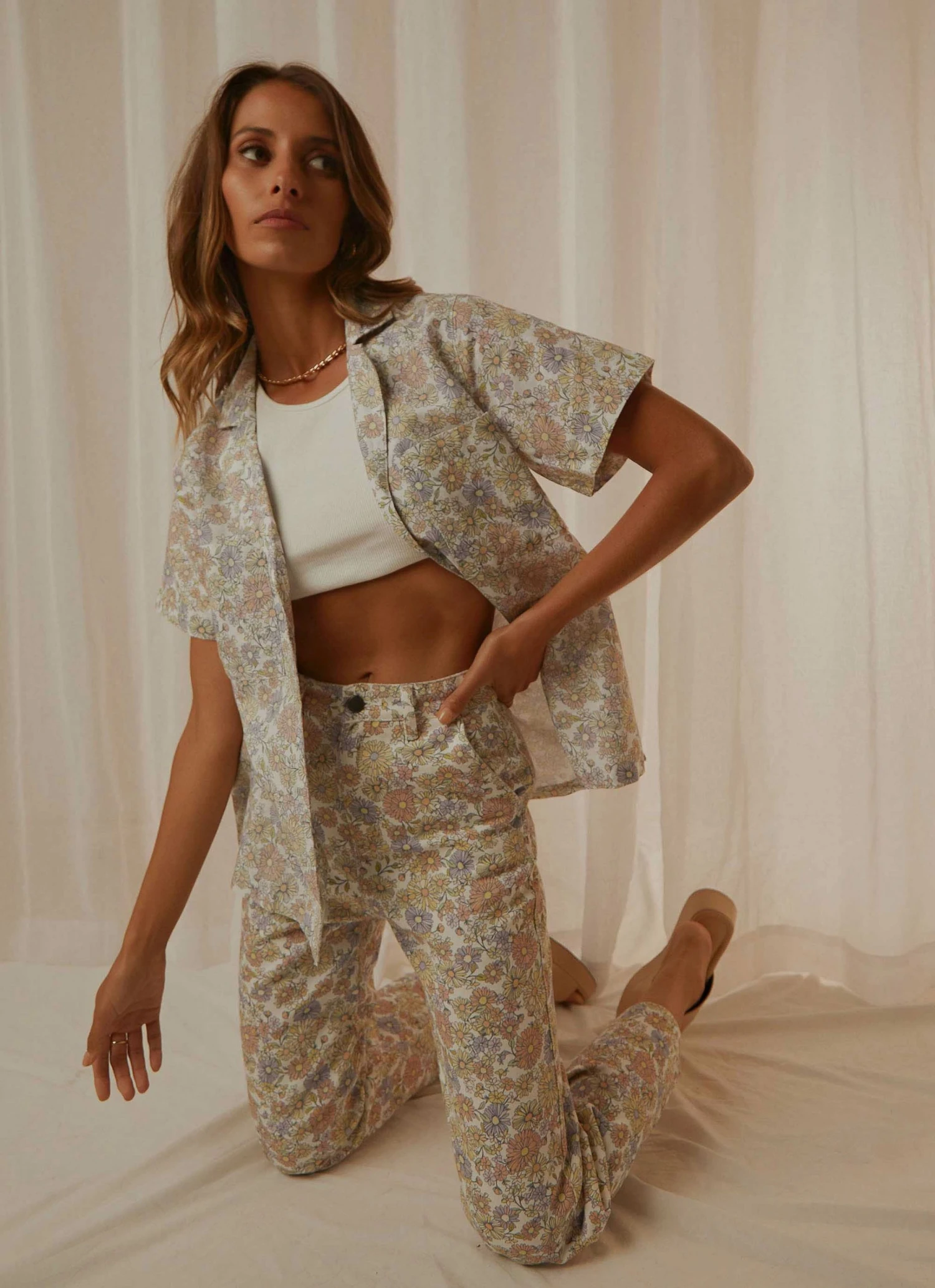 The Safari inspired Short Sleeve Shirt in Flower Power is cut from airy linen and features a pointed collar, button closure and sleeves that fall above the elbow.