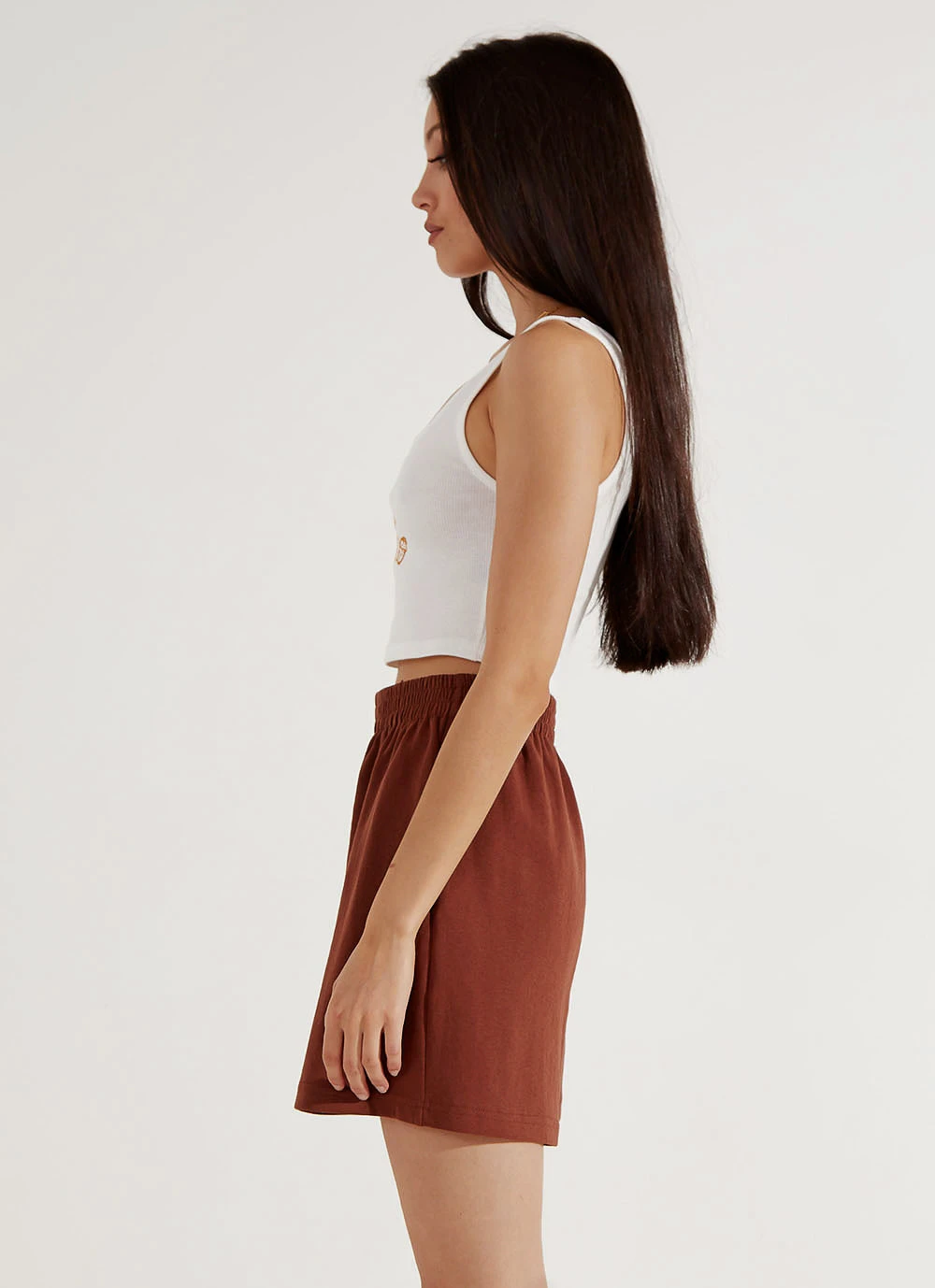 Hi cutie! This little top is set to become a staple in your summer wardrobe. Pair with a high waist denim short and sneakers.